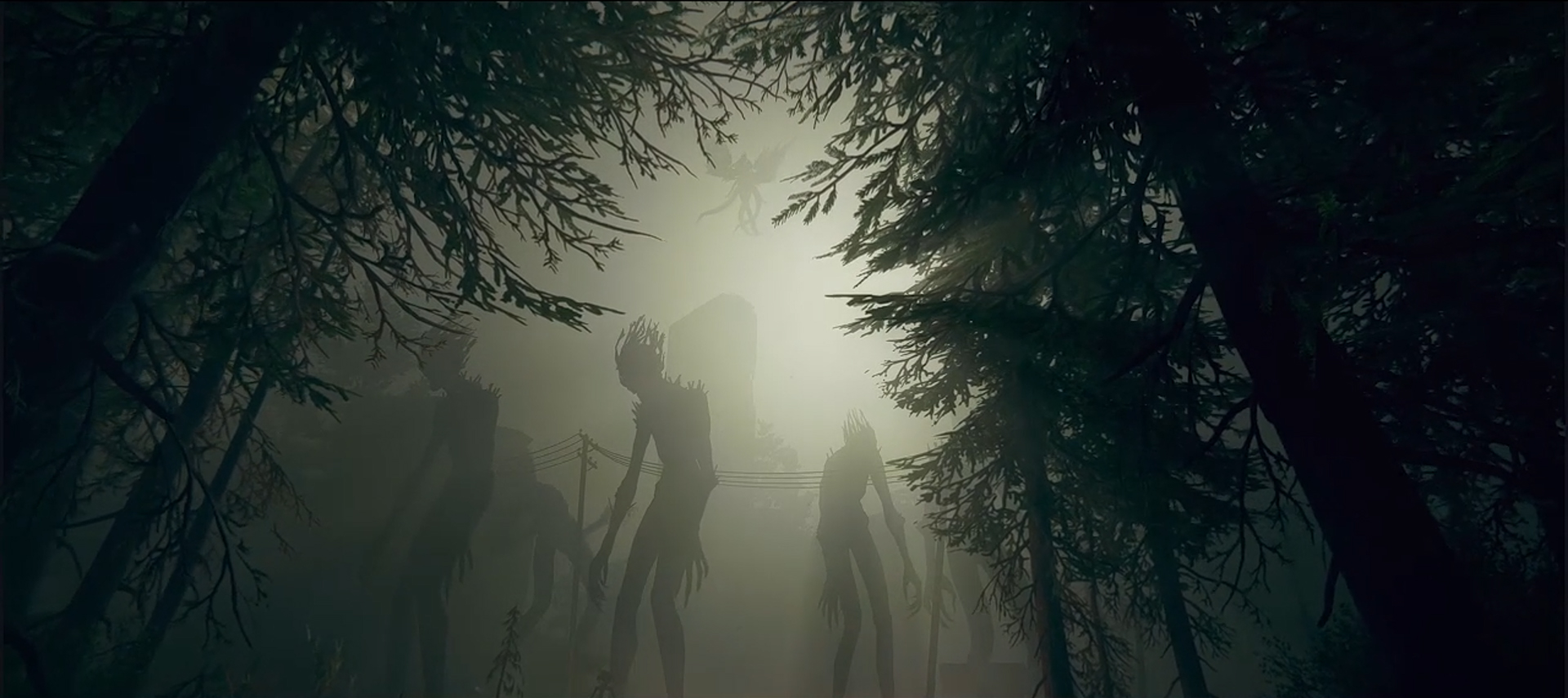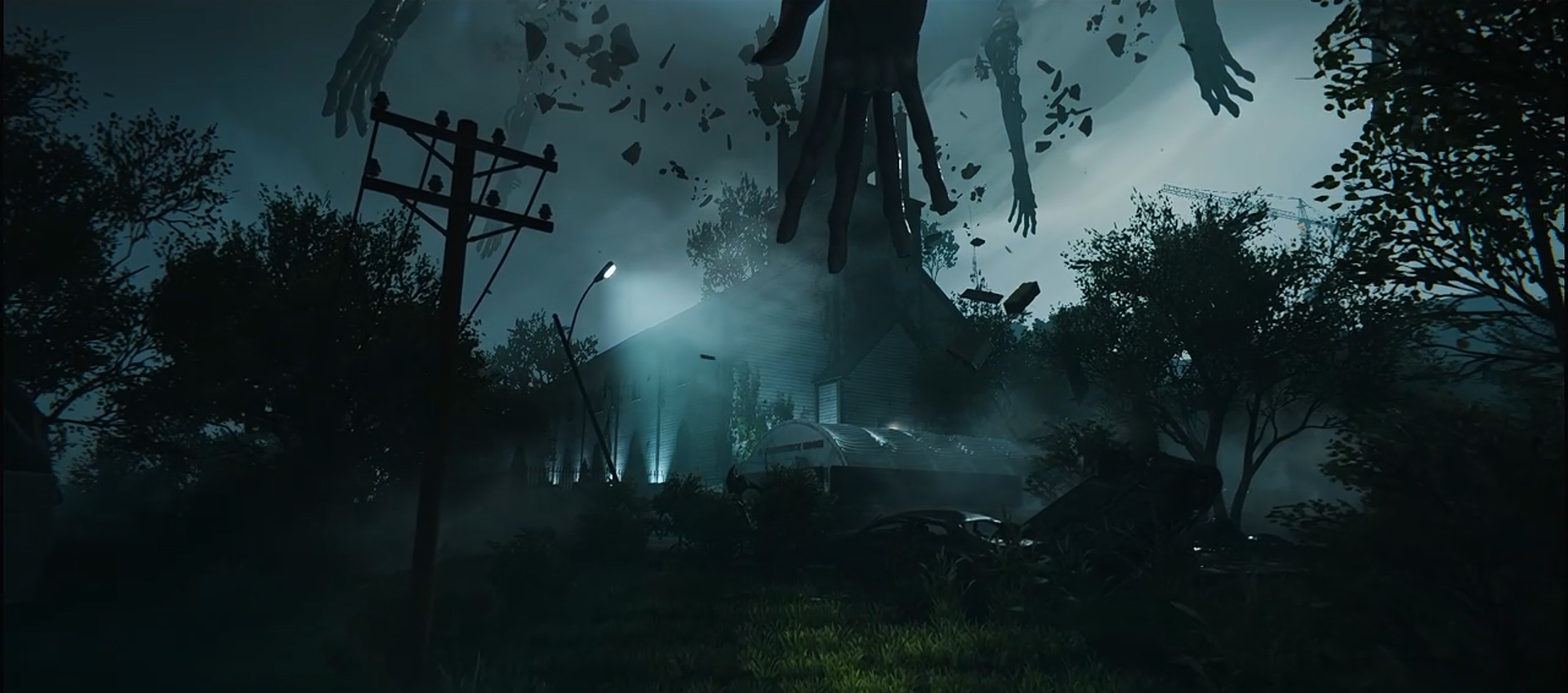 从“新怪谈”题材中汲取灵感,《七日世界》制作了丰富的超自然场景。丛林中白日看起来平平无奇的房屋,夜幕降临时竟从窗户中透出怪异的红光。暗黑的丛林中怪象迭出——行走的异形体长手长脚酷似树妖、玩偶外形的生命体拥有难以名状的身形……天空何故伸下巨手?夜晚废墟飞溅的房屋,白日为何修葺一新?实机视频通过对部分游戏场景的呈现,将末日神秘感拉满。